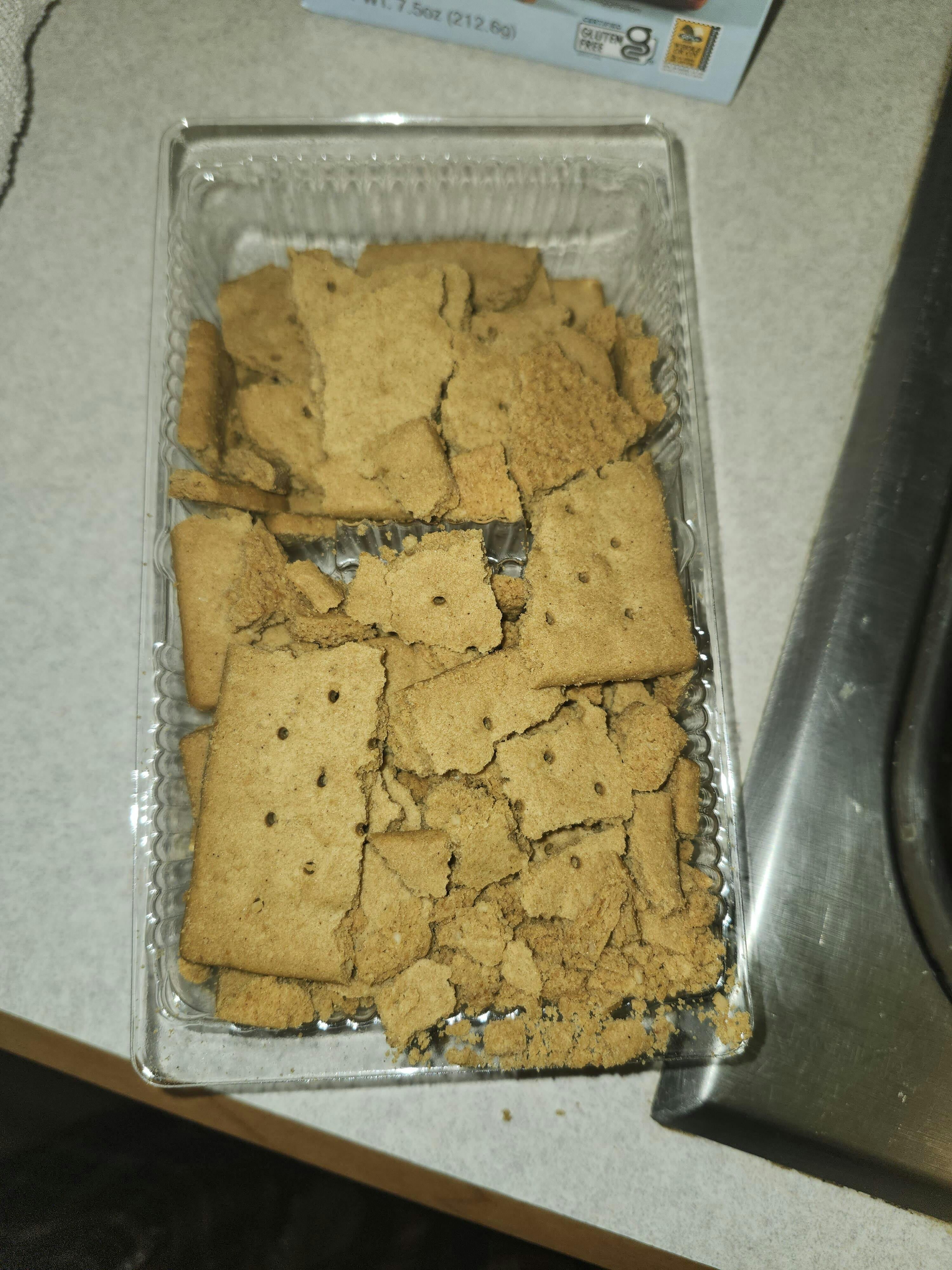 I love the GF Honey Grahams,I have been buying them for years and the past 4 boxes were smashed when we opened them.3 boxes were from Ohio and one we got in Indiana.It was not a store issue in shipment like we thought,because it was in two different states.You can't speak live to customer service.The number says it's faster to email.No it's not 2 weeks ago I emailed Pamelas and again last week,no response at all.What is the issue and why the smashed up boxes and no response? You can't make smores with a busted up mess.