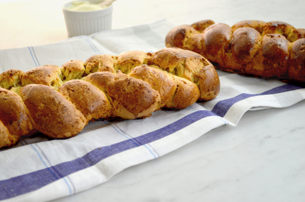 This traditional egg bread, made gluten-free, is delicious for any occasion. The dough freezes very well, so you can make it ahead of time to bake fresh when needed. Made with Pamela’s Bread Mix.