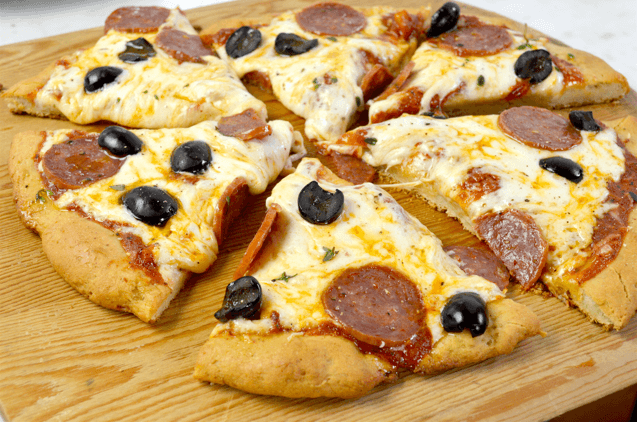 Delight in a fresh from the oven pizza with your favorite toppings on a this traditional chewy, bready crust. Made with our Bread Mix.