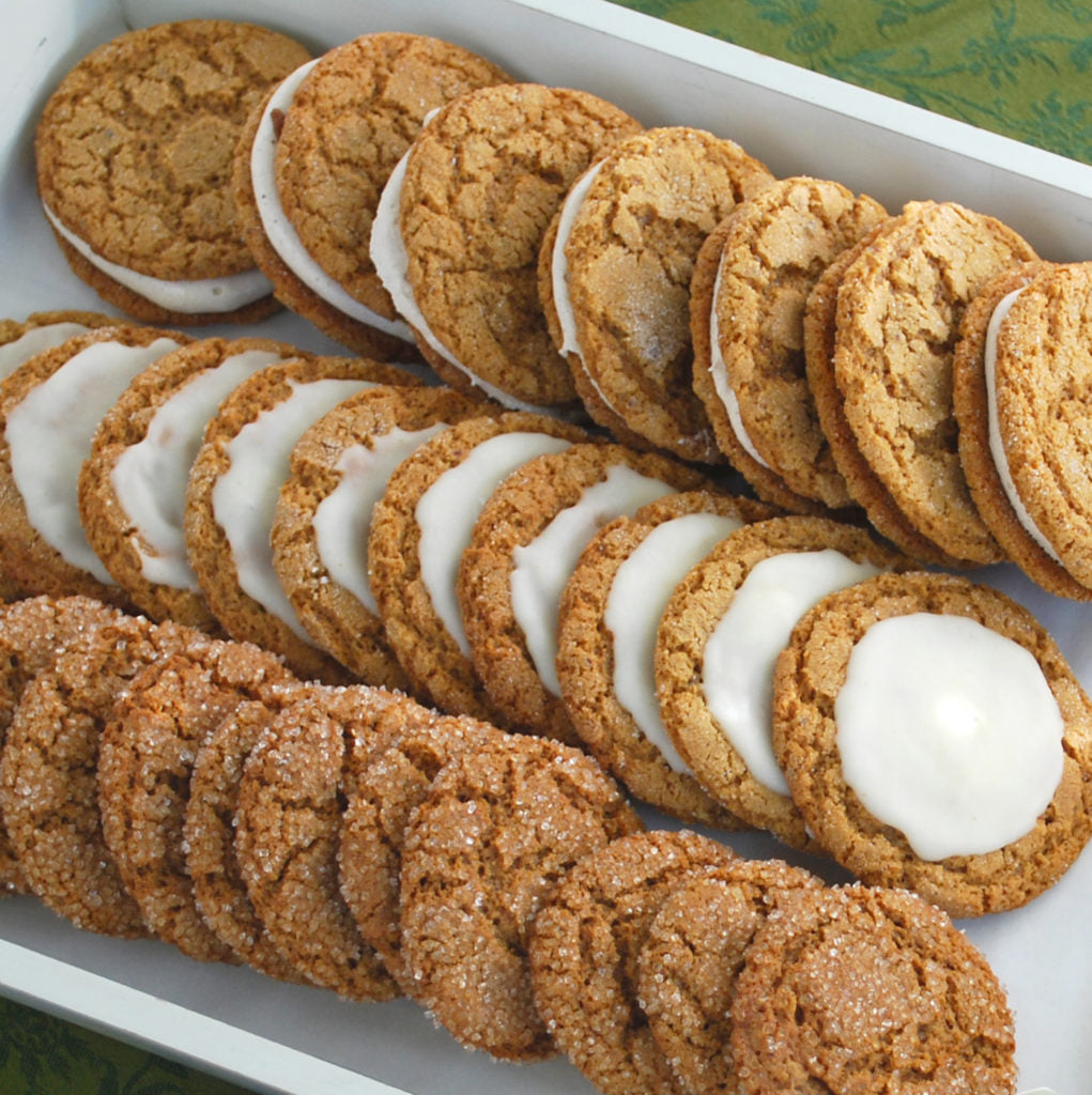 Your family will find this softer version of the classic gingersnap cookie irresistible!  Minced crystallized ginger is added to the batter for extra ginger flavor and a simple confectioners’ sugar drizzle with browned butter and ground ginger adds a special touch to the cookie. The spiced cream cheese and marshmallow filling version makes for a great holiday cookie! 2012 Recipe Contest “Praiseworthy” Recipe by Barbara E.