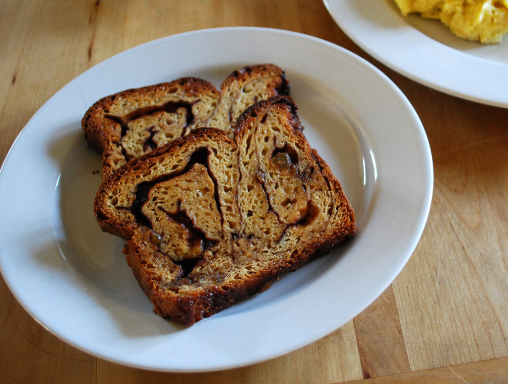 I will be making this delicious bread again and again with fun variations, like subbing sugar free chocolate chips for the raisins! I also need to practice rolling this dough. I found it easier to handle the dough when I dipped my fingers in cold water rather than oiling them. Next time I will use very little oil on my parchment paper to prevent my dough from sliding around too much.