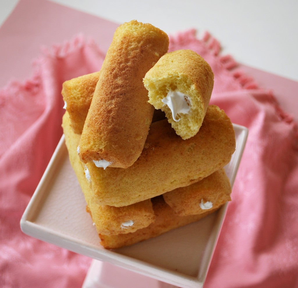 Just before filling, remove each cake from the foil. Using the end of a chopstick, poke three holes in the bottom of each cake and one in each end. Wiggle the tip of the chopstick around some to make room for the filling.