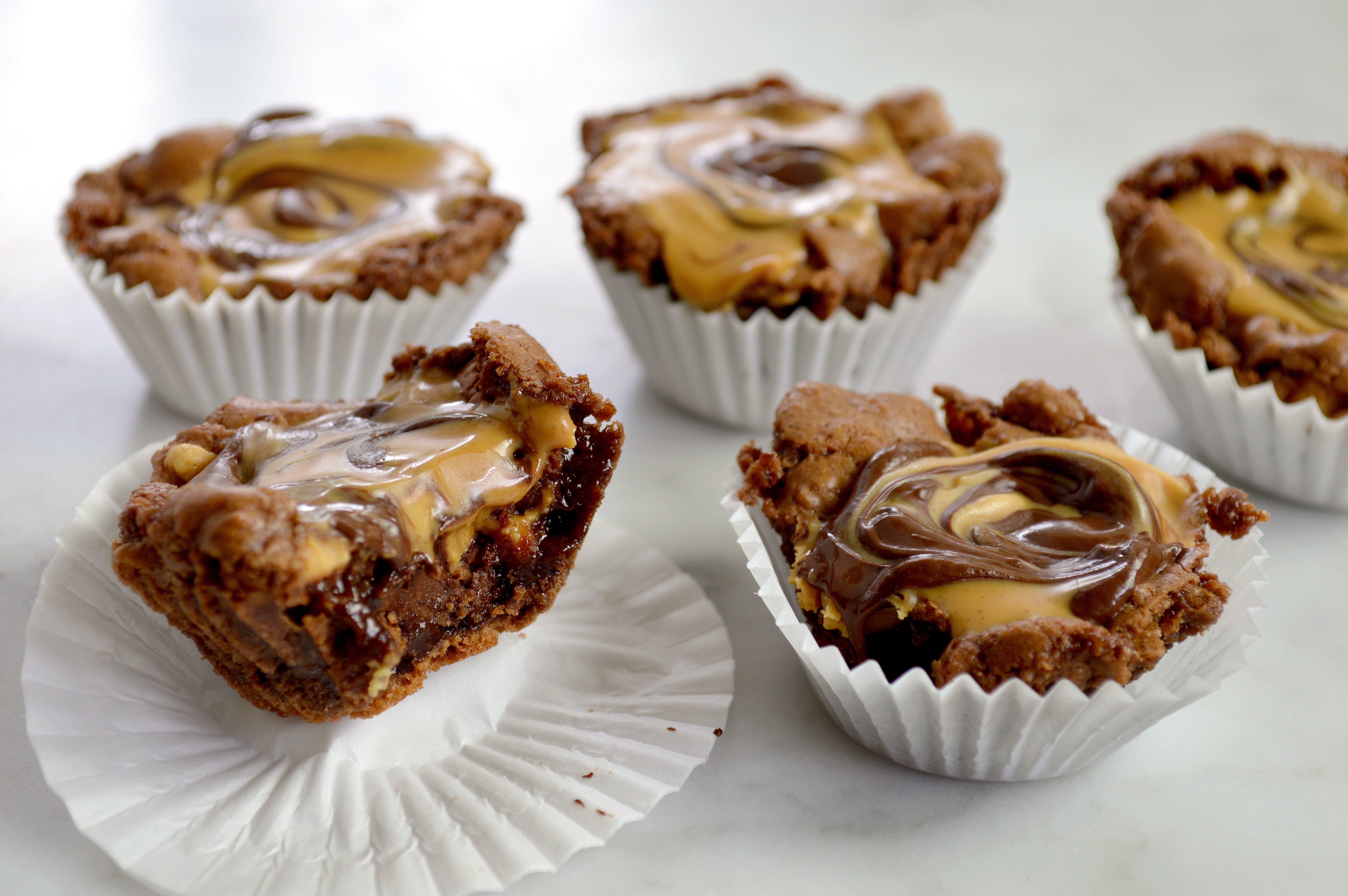 Stir in 1/2 cup each semi-sweet chocolate chips and peanut butter chips. Spoon batter by heaping tablespoons into mini-muffin cups (cups should be about 3/4 full). Bake 10-15 minutes or until top is set and toothpick inserted in brownie cup comes out with a few crumbs.