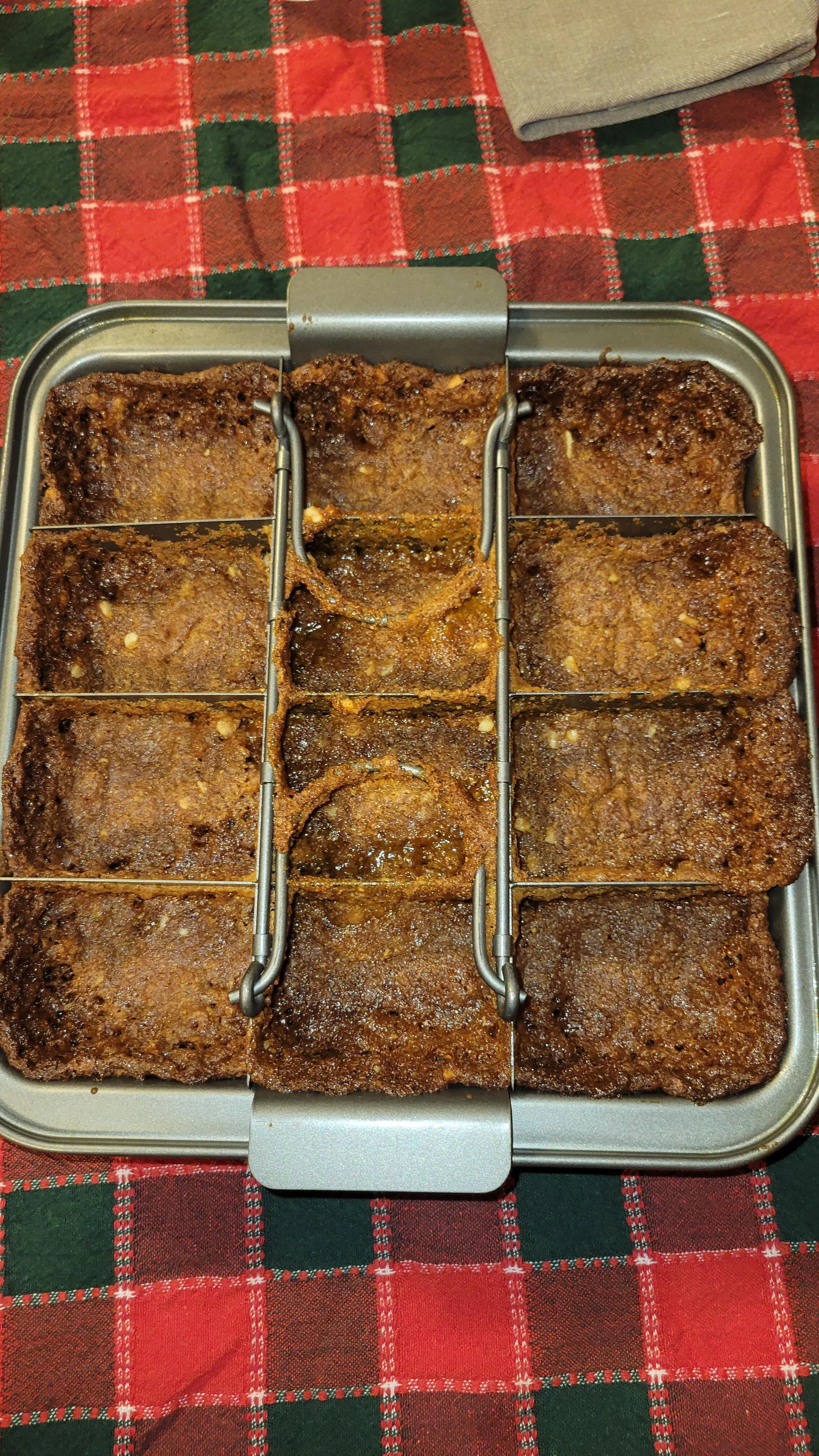 Place dough into baking dish and smooth using the back of a spatula. Bake for 30 minutes and let cool for 20 minutes before removing and cutting into squares.